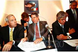 El zar antidrogas de USA Edward H. Jurith, y el asesor de la presidencia para la seguridad nacional, Adolfo Aguilar Zinser, durante la Binacional México-Estados Unidos Sobre Reducción de la Demanda de Drogas. FOTO: Pedro Mera/CUARTOSCURO.COM