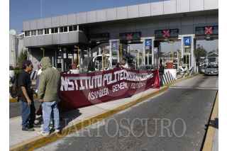 MÉXICO, D.F., 01DICIEMBRE2015.- Estudiantes del politécnico, algunos encapuchados, realizaron una protesta y boteo en la caseta de la México Cuernavaca. FOTO: ARMANDO MONROY /CUARTOSCURO.COM