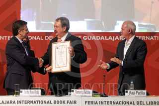GUADALAJARA, JALISCO. 01DICIEMBRE2015.-Fernando Serrano Migallón recibió el Reconocimiento del Homenaje al Bibliófilo FIL 2015, esto en el marco de la edición 29 de la Feria Internacional del Libro de Guadalajara FIL, que tiene como país invitado de honor al Reino Unido. FOTO: FERNANDO CARRANZA GARCIA / CUARTOSCURO.COM