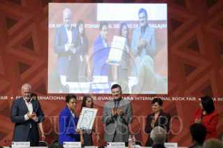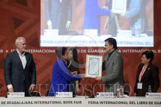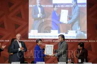 GUADALAJARA, JALISCO. 02DICIEMBRE2015.-Irma Cordera de Perez Monroy recibió el Reconocimiento del Homenaje al Bibliotecario FIL 2015, esto en el marco de la edición 29 de la Feria Internacional del Libro de Guadalajara FIL, que tiene como país invitado de honor al Reino Unido. FOTO: CUARTOSCURO.COM