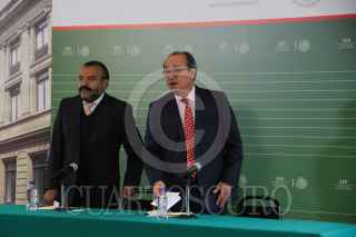 MÉXICO, D.F., 03DICIEMBRE2015.- Aurelio Nuño, Secretario de Educación Pública, durante la conferencia de prensa para hablar sobre la interrupción de la Evaluación Educativo en su primer día en el estado de Guerrero. FOTO: ADOLFO VLADIMIR /CUARTOSCURO.COM