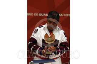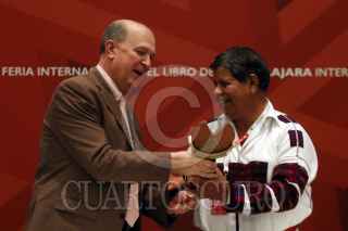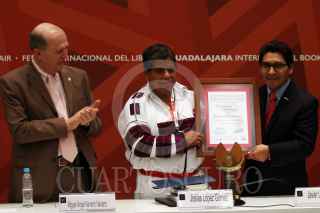 GUADALAJARA, JALISCO. 03DICIEMBRE2015.-El escritor de lengua tseltal de origen Chiapaneco Josías López Gómez, recibió el Premio de Literaturas Indígenas de América 2015 , esto en el marco de la edición 29 de la Feria Internacional del Libro de Guadalajara FIL, que tiene como país invitado de honor al Reino Unido. FOTO: FERNANDO CARRANZA GARCIA / CUARTOSCURO.COM