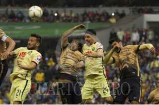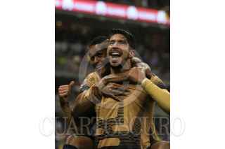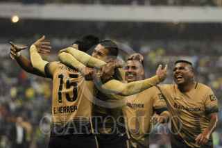 MÉXICO, D.F., 03DICIEMBRE2015.- Eduardo Herrera, celebra el último gol, en el encuentro semifinal de fútbol de la liguilla del Torneo Apertura 2015, las Águilas del América fueron derrotados en casa tres goles por cero por los Pumas de la UNAM. FOTO: ADOLFO VLADIMIR /CUARTOSCURO.COM