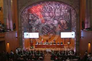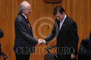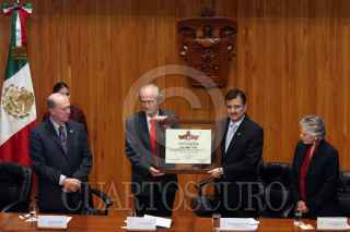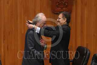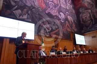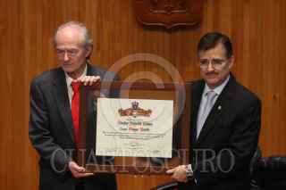 GUADALAJARA, JALISCO, 04DICIEMBRE2015.- El historiador francés naturalizado mexicano Jean Meyer, fue reconocido hoy en el Paraninfo Enrique Díaz de León, con el Doctorado Honoris Causa por la Universidad de Guadalajara, esto en el marco de la edición 29 de la Feria Internacional del Libro de Guadalajara FIL, que tiene como país invitado de honor al Reino Unido. FOTO: FERNANDO CARRANZA GARCIA / CUARTOSCURO.COM