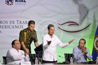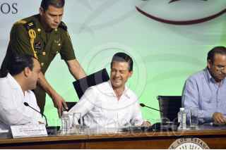 CANCÚN, QUINTANA ROO, 04DICIEMBRE2015.- El presidente de la República Enrique Peña Nieto dio por concluidas las actividades de la XIX de la Conferencia Interamericana de Ministros del Trabajo y Previsión Social de la Organización de los Estados Americanos, acompañaron al mandatario; el gobernador de la entidad Roberto Borge Angulo y el secretario del Trabajo Alfonso Navarrete. FOTO: ELIZABETH RUIZ /CUARTOSCURO.COM