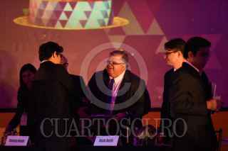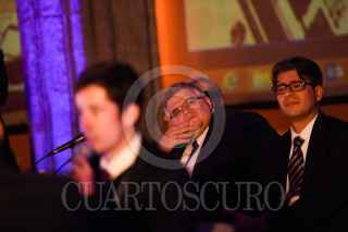 MÉXICO, D.F., 04DICIEMBRE2015.- Agustín Carstens, Gobernador del Banco de México, durante la entrega del "Premio Contacto Banxico", en la cual también hicieron presencia Dionisio Meade, Director General de Relaciones Institucionales del Banco de México, y Oscar Durán Díaz, Director de Vinculación Institucional del Banco de México. FOTO: PEDRO ANZA /CUARTOSCURO.COM