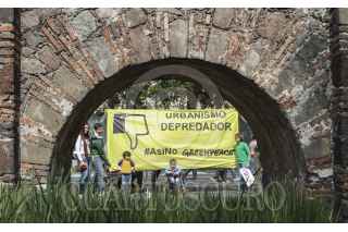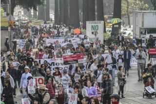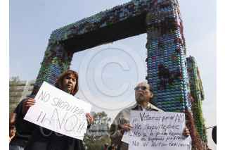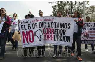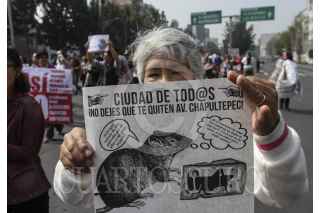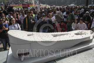 MÉXICO, D.F., 05DICIEMBRE2015.- Vecinos de las colonias Roma, Condesa, Lindavista, Guerrero, Santa María La Ribera, y otras, protestaron en contra de la construcción del Corredor Cultural Chapultepec sobre la avenida homónima. Además se manifestaron en contra del desarrollo del Proyecto del Tren Interurbano en Álvaro Obregón. Mañana los vecinos que estén inscritos al padrón de la delegación Cuauhtémoc podrán votar a favor o en contra de la construcción de lo que han denominado "Shopultepec", en la Consulta Ciudadana convocada por el IEDF. La marcha pacífica salió del Acueducto cerca del metro Sevilla hacia el Ángel de la Independencia. En la imagen, un modelo a escala del Centro Cultural Chapultepec al cual han apodado "El Titanic" por la forma que tiene. FOTO: MARÍA JOSÉ MARTÍNEZ /CUARTOSCURO.COM