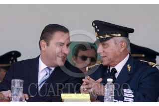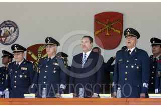 PUEBLA, PUEBLA, 05DICIEMBRE2015.- Salvador Cienfuegos Zepeda, secretario de Defensa Nacional, acompañado por el gobernador Rafael Moreno Valle, encabezó la "Ceremonia de Clausura de los Cursos de Formación y Regularización de Sargentos 1ros y 2dos de las Armas, Fuerzas Aérea, Fusileros Paracaidistas y Policía Militar", en las instalaciones de la Escuela Militar de Sargentos (EMS), dentro de la la 25a Zona Militar. FOTO: HILDA RÍOS /CUARTOSCURO.COM