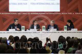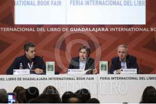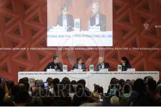 GUADALAJARA, JALISCO., 05DICIEMBRE2015.- Carmen Aristegui, y Lidia Cacho presentaron el Libro del escritor Edgardo Buscaglia “Lavado de Dinero y Corrupción Politica”, esto en el marco de la edición 29 de la Feria Internacional del Libro de Guadalajara FIL, que tiene como país invitado de honor al Reino Unido. FOTO: CUARTOSCURO.COM