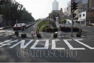 MÉXICO, D.F., 06NOVIEMBRE2015.- Organizaciones en contra del Corredor Cultural Chapultepec montaron una infraestructura similar al acueducto ubicado en avenida Chapultepec con letreros y pintas en el pavimento invitando a votar no a la construcción de dicho proyecto, esto durante la Consulta Ciudadana que el Insituto Elecotal del Distrito Federal realizo. FOTO: GALO CAÑAS /CUARTOSCURO.COM