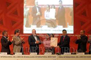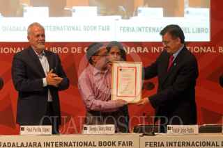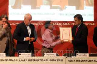 GUADALAJARA, JALISCO., 06DICIEMBRE2015.- Sergio González Rodríguez fue reconocido con el Homenaje Nacional de Periodismo Cultural Fernando Benítez, esto en el marco de la edición 29 de la Feria Internacional del Libro de Guadalajara FIL, que tiene como país invitado de honor al Reino Unido. FOTO: FERNANDO CARRANZA GARCIA / CUARTOSCURO.COM