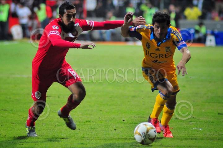 TOLUCA, EDOMEX, 06DICIEMBRE2015.- Partido semifinal de vuelta entre los Diablos Rojos del Toluca y los Tigres en el estadio Nemesio Diez. Los Tigres se ponen a la cabeza 2 goles a cero sobre los Diablos Rojos de Toluca. Javier Aquino y Damian Álvarez le dan la victoria a los Tigres de Nuevo León. FOTO: DIEGO SIMÓN SÁNCHEZ /CUARTOSCURO.COM