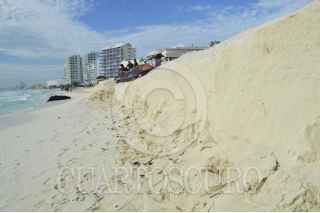 CANCÚN, QUINTA ROO, 07DICIEMBRE2015.- La playa Gaviotas en la zona hotelera de este destino turístico luce una notable erosión debido al mal tiempo que ha imperado en la zona. FOTO: ELIZABETH RUIZ /CUARTOSCURO.COM