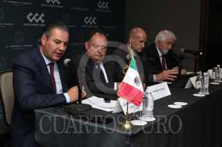 MÉXICO, D.F., 09DICIEMBRE2015.- John Rice, Armando Garza, Gerardo Gutiérrez y Gerardo Gutiérrez durante una conferencia en el marco del Dialogo de CEO Mexico- Estados Unidos. FOTO: ISABEL MATEOS /CUARTOSCURO.COM