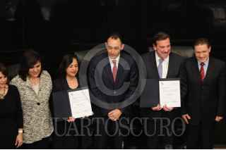 MÉXICO, D.F., 10DICIEMBRE2015.- Dos de los ministros electos durante la sesión ordinaria en el Senado, tomaron protesta frente al pleno, Norma Lucia Piña y Javier Laines. FOTO: ISABEL MATEOS /CUARTOSCURO.COM