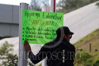 CHILPANCINGO, GUERRERO, 11DICIEMBRE 2015- Profesores de la Coordinadora Estatal de trabajadores de la Educación en Guerrero (Ceteg) encabezados por el Secretario General Ramos Reyes Guerrero a las 7:40 de la mañana tomaron la caseta de cobro de peaje de la Autopista del Sol dieron paso libre a los usuarios a cambio de una cooperación voluntaria, esta acción es en rechazo a la valuación magisterial y en apoyo a los normalistas detenidos en Michoacán. FOTO: JOSÉ I. HERNÁNDEZ /CUARTOSCURO.COM