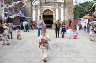 CUERNAVACA, MORELOS, 12DICIEMBRE2015.- Feligreses asistieron a la Iglesia del Barrio de Gualupita para celebrar el Día de la Virgen de Guadalupe. En los alrededores los puestos de feria ofrecen el pan y antojitos mexicanos y se prepara el tradicional castillo. FOTO: PATRICIA MORALES /CUARTOSCURO.COM