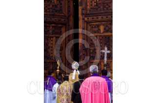 MÉXICO, D.F., 13DICIEMBRE2015.- El Cardenal Norberto Rivera Carrera, abrió la puerta Santa de la Catedral Metropolitana como parte del inicio al Jubileo de la Misericordia que realiza la religión Católica. FOTO: ENRIQUE ORDÓÑEZ /CUARTOSCURO.COM