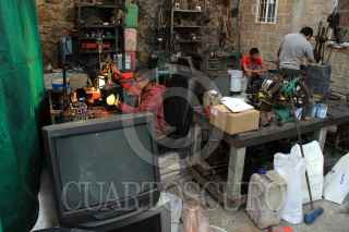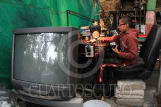 CUERNAVACA, MORELOS, 02DICIEMBRE2015.- Aparatos de televisión en desuso se encuentran apilados en un taller de cepillos de poliuretano. Con la puesta en marcha del Apagón Analógico, la gente ya no quiere gastar en reparar sus televisores. FOTO: PATRICIA MORALES /CUARTOSCURO.COM