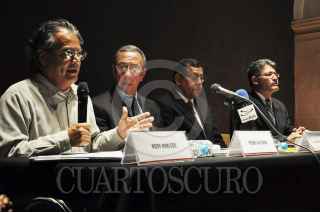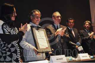 ZACATECAS, ZACATECAS, 15DICIEMBRE2015.- En el marco de la XIII Edición del Premio Estatal de Periodismo Cultural, Juan Ignacio María de Castorena, el Gobierno del Estado de Zacatecas a través del Instituto Zacatecano de Cultura, Ramón López Velarde, entregó en manos de su Director Gustavo Salinas Iñiguez un reconocimiento a Pedro Valtierra por 40 años de trayectoria como fotógrafo, editor, promotor e impulsor del foto periodismo en México. FOTO: CARLOS SEGURA /CUARTOSCURO.COM