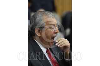 MÉXICO, D.F., 16DICIEMBRE2015.- Lorenzo Córdova, consejero presidente, y los consejeros electorales acudieron a la Sesión Ordinaria del Instituto Nacional Electoral (INE). En la imagen Pedro Vázquez, representante del Partido del Trabajo, partido cuya permanencia será definida tras seis meses de indefinición, debido a que obtuvo los votos necesarios en la elección extraordinaria en Aguascalientes. FOTO: MARÍA JOSE MARTÍNEZ /CUARTOSCURO.COM