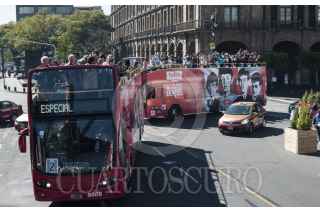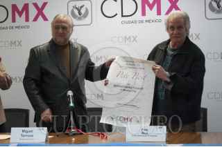 MÉXICO, D.F., 16DICIEMBRE2015.- Miguel Torruco, secretario de turismo capitalino, presentó en compañía de Pete Best, primer baterista del grupo The Beatles, el recorrido temático del turibus "Magical Mystery Tour" como parte de los festejos del gran festival dedicado al cuarteto de Liverpool, a celebrarse del 17 al 20 de diciembre, en el Centro Cultural Futurama. FOTO: DIEGO SIMÓN SÁNCHEZ /CUARTOSCURO.COM