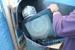 MÉXICO, D.F., 16DICIEMBRE2015.- Miles de personas tiran televisores ante el anunció del apagón analógico que se realizara en el Distrito Federal a partir de hoy las 00:00 hrs. FOTO: SAÚL LÓPEZ /CUARTOSCURO.COM