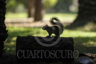 MÉXICO, D.F., 26MAYO2015.- Una ardilla camina sobre un tronco en el parque de los Viveros de Coyoacan. FOTO: ENRIQUE ORDÓÑEZ /CUARTOSCURO.COM