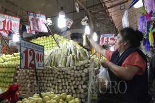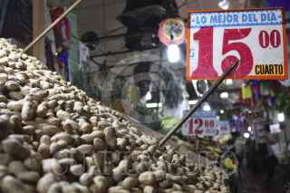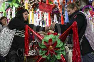 MÉXICO, D.F., 18DICIEMBRE2015.- De siete picos multicolores, los comerciantes del Mercado de la Merced despachan la tradicionales piñatas que se utilizarán para esta época de posadas. Fruta, colación, cacahuates y variedad de dulces también están a la venta en la principal nave de uno de los mercados más tradicionales en la ciudad. FOTO: MARÍA JOSÉ MARTÍNEZ /CUARTOSCURO.COM