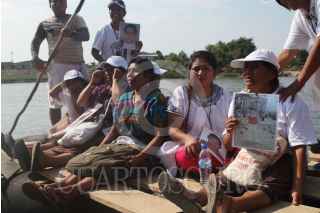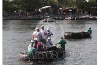 TECÚN UMÁN, GUATEMALA, 18DICIEMBRE2015.- En el marco del Día Internacional del Migrante la Caravana de Madres Centroamericanas realizó una mitin a orillas del Río Suchiate para después trasladarse a Tecún Umán de lado Guatemala, esto como parte de la exigencia a los gobiernos de ambos países de respetar los derechos humanos de las personas que se trasladan de sus países de origen hacia Estados Unidos. FOTO: MOISÉS PABLO /CUARTOSCURO.COM