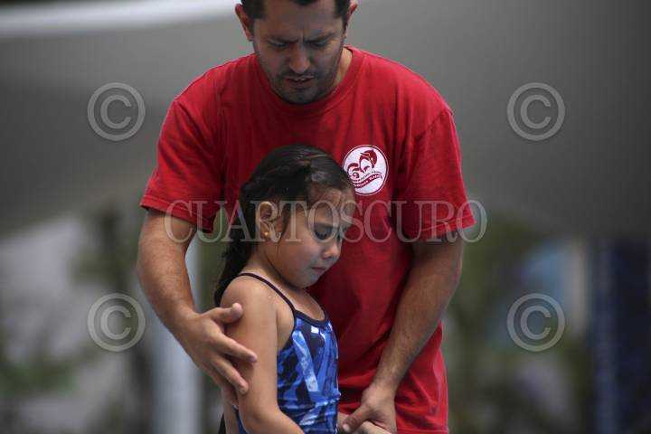 VERACRUZ, VERACRUZ, 19DICIEMBRE2015.- Los clavados son un deporte de arte competitivo y de iniciación temprana, aproximadamente desde los 5 años pueden comenzar a entrenar. Esta disciplina no sólo es exigente por los saltos y la precisión a la que se aspira sino también porque se necesita una gran preparación psicológica, vencer el miedo a las alturas y asimilar un medio que no es el natural, el agua. En Veracruz se reinauguró en 2006 la Escuela de Clavados en el Centro Acuático Leyes de Reforma gracias a una fuerte inversión, sin embargo debido a los Juegos Centroamericanos tuvieron una interrupción de actividades por 2 años. El profesor Carlos Gabriel Muñoz Otaño de nacionalidad cubana entrena a 125 niños de edades entre los 6 y 18 años 2 o 3 horas diarias, la meta es competir en torneos preparatorios para la Olimpiada Nacional y así colocar a Veracruz dentro de los 5 mejores del país. Estos niños, aprenden a superar miedos, frustraciones y derrotas co n el deporte; los entrenadores pasan a ser fundamentales en su vida, los momentos efímeros pero bellos que representan ver la ejecución de un clavado bien realizado sólo se logran con una férrea disciplina y la valentía necesaria para lanzarse muchas veces a un vacío de hasta 10 metros, sin lugar a dudas no es un deporte que cualquiera pueda practicar. FOTO: ILSE HUESCA /CUARTOSCURO.COM
