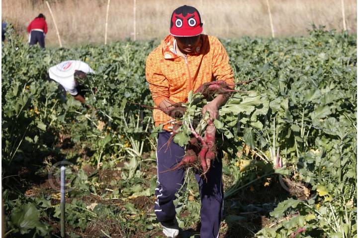OAXACA, OAXACA, 19DICIEMBRE2015.- La mañana de este sábado hortelanos de la ciudad de Oaxaca y municipios conurbados cosecharon un aproximado de 15 toneladas de rábanos en sus variedades de champion y bartender, mismos que serán utilizados para la tradicional Noche de Rábanos a efectuarse el 23 de diciembre en el zócalo de la ciudad y en la que competirán 80 participantes en las diversas categorías, así como en totomoxtle y flor inmortal. FOTO: ARTURO PÉREZ ALFONSO /CUARTOSCURO.COM