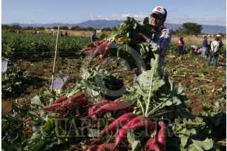 OAXACA, OAXACA, 19DICIEMBRE2015.- La mañana de este sábado hortelanos de la ciudad de Oaxaca y municipios conurbados cosecharon un aproximado de 15 toneladas de rábanos en sus variedades de champion y bartender, mismos que serán utilizados para la tradicional Noche de Rábanos a efectuarse el 23 de diciembre en el zócalo de la ciudad y en la que competirán 80 participantes en las diversas categorías, así como en totomoxtle y flor inmortal. FOTO: ARTURO PÉREZ ALFONSO /CUARTOSCURO.COM