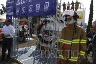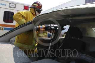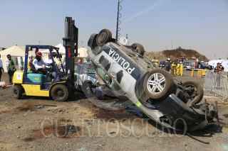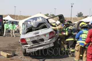 MÉXICO, D.F., 19DICIEMBRE2015.- Personal de rescate de todas diversas dependencias de rescate participaron en el segundo Reto Nacional de Extracción Vehicular que tiene como objetivo la homologación, capacitación y mejora en las técnicas de atención médica prehospitalaria en pacientes que se encuentran atrapados o confinados en vehículos siniestrados. Dicha exhibición se realizó en la base de Fuerza de Tarea de al SSP-DF. FOTO: SAÚL LÓPEZ /CUARTOSCURO.COM
