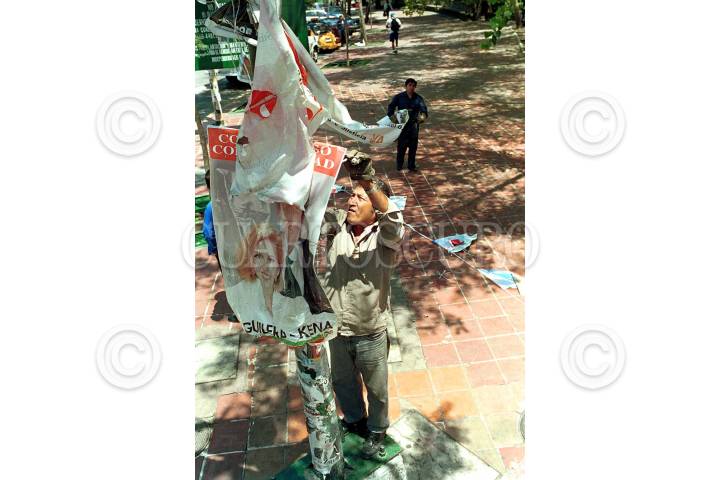 A unas horas de que terminaran los festejos de los candidatos electos, decenas de trabajadores de la delegación Cuauhtémoc retiraron la propaganda política que se encontraba en paseo de la Reforma. FOTO: Germán Romero/CUARTOSCURO.COM