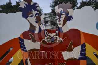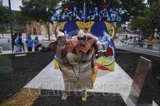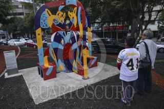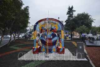 MÉXICO, D.F., 22DICIEMBRE2015.- Fue inaugurado el conjunto escultórico "La siempre viva vive", de los artistas visuales Marisa Lara y Arturo Guerrero, conjunto de cuatro obras, realizadas en acero, instalado en la céntrica Plaza de Tlaxcoaque como un homenaje a las víctimas del terremoto de 1985. FOTO: ADOLFO VLADIMIR /CUARTOSCURO.COM