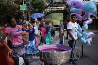 MÉXICO, D.F., 22DICIEMBRE2015.- En una de las entradas del Bosque de Chapultepec, niñas esperan la salida del algodón de azúcar e intentar atrapar un poco. FOTO: ISABEL MATEOS /CUARTOSCURO.COM