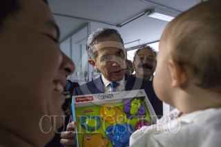MÉXICO, D.F., 23DICIEMBRE2015.- Miguel ángel Mancera jefe de gobierno capitalino en compañía de Armando Ahued secretario de salud, entregaron juguetes en el Hospital Pediátrico de Peralvillo a menores que permanecen internados. FOTO: ENRIQUE ORDÓÑEZ /CUARTOSCURO.COM