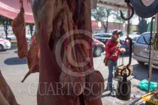 MÉXICO, D.F., 24DICIEMBRE2015.- Cientos de personas acudieron al mercado de carnes y aves ubicado a un costado del rastro de ferrería para comprar lo necesario para esta cena de navidad la cual disfrutaran en la compañía de familiares y amigos. FOTO: ENRIQUE ORDÓÑEZ /CUARTOSCURO.COM