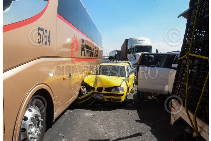 ZUMPANGO, EDO. MEX., 24DICIEMBRE2015.- Choque multiple en la autopista del circuito exterior mexiquense en el kilómetro 7. Por la intensa niebla dos tráiler chocaron de frente y prensaron una camioneta, y más de 50 vehículos entre camiones de pasajeros, camionetas y autos particulares, resultando 6 muertos y mas de 27 heridos. FOTO: ARMANDO MONROY /CUARTOSCURO.COM