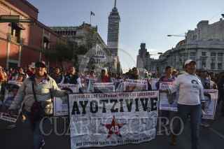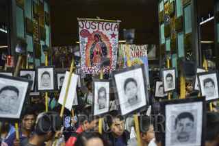 MÉXICO, D.F., 26DICIEMBRE2015.- Familiares de los 43 normalistas desaparecidos de Ayotzinapa, realizaron una procesión de la Catedral a la Basílica de Guadalupe en exigencia de la aparición con vida de los jóvenes estudiantes al cumplirse 15 meses del ataque en Iguala, Guerrero. FOTO: ADOLFO VLADIMIR /CUARTOSCURO.COM