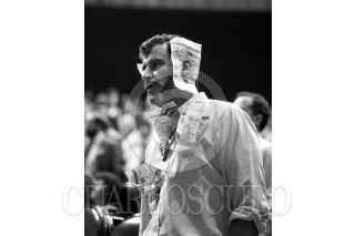 Vicente Fox se pone boletas electorales el 8 de septiembre de 1988 durante la calificación de las elecciones presidenciales. Foto: Tomás Martínez/CUARTOSCURO