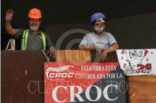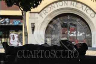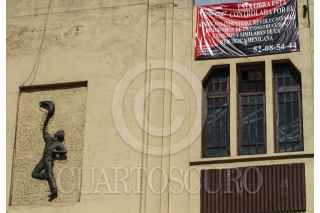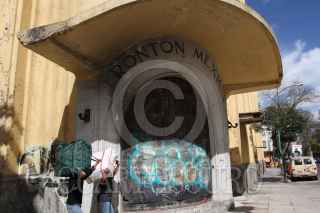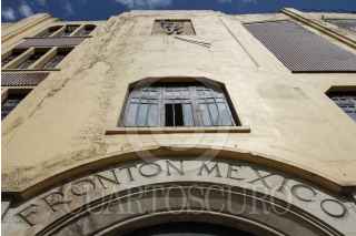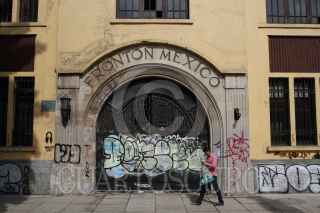 MÉXICO, D.F., 28DICIEMRE2015.- Personal de la empresa constructora Omitlán trabaja en la demolición interna del Frontón México que se encuentra ubicado frente al Monumento a la Revolución. El edificio data de 1929 y fue uno de los centros deportivos más representativos de la escena del jai alai "cesta punta", deporte de origen vasco. La restauración del inmueble contempla la construcción del Hotel Frontón, para el cual serán necesario el derribe de 3 edificios periféricos, y la implementación de una sala de conciertos al interior del Frontón que podrá albergar hasta 4 mil personas. La fachada del inmueble se encuentra protegida por el Instituto Nacional de Antropología e Historia (INAH) y el Instituto Nacional de Bellas Artes, por lo que queda prohibida su demolición o cualquier modificación. FOTO: MARÍA JOSÉ MARTÍNEZ /CUARTOSCURO.COM