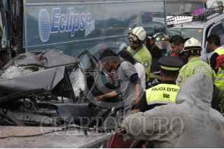 ZUMPANGO, EDOMEX, 28DICIEMBRE2015.- De nuevo por la neblina se suscitó un choque en el kilómetro 8+800 del Circuito Mexiquense, en el percance murió un hombre y 7 lesionados tras impactarse contra un camión de pasajeros de la línea Eclipse. FOTO: ARMANDO MONROY /CUARTOSCURO.COM