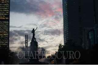MÉXICO, D.F., 28DICIEMBRE2015.- Atardecer desde Paseo de la Reforma, a la altura de la Diana Cazadora, el cielo luce a medio nublado ante el fuerte viento que se ha sentido los ultimos días. FOTO: DIEGO SIMÓN SÁNCHEZ /CUARTOSCURO.COM