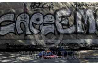 MÉXICO, D.F., 29DICIEMBRE2015.- Indigente duerme sobre Eje Central con sus sueños enmarañados entre los graffitis citadinos. FOTO: MOISÉS PABLO /CUARTOSCURO.COM