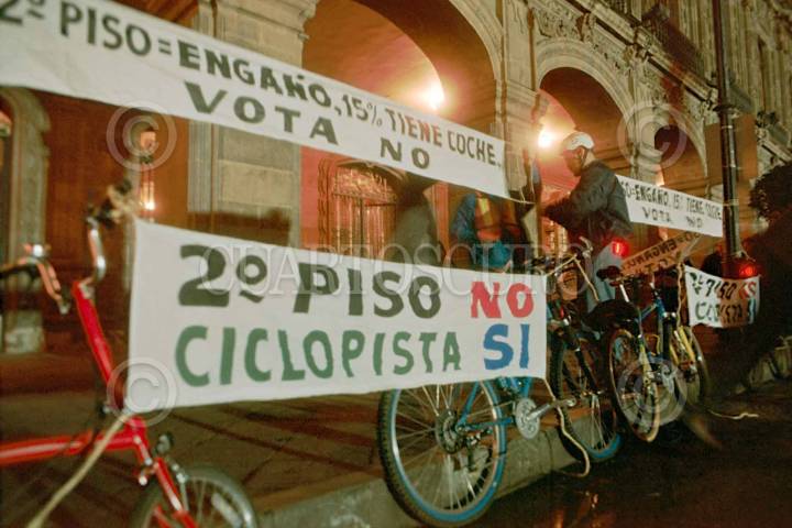 Unas 10 personas pertenecientes al "grupo bicitecas" , se manifestarón frente a las oficinas del GDF para demandar la construcción de una ciclopista. FOTO: Christian Palma/CUARTOSCURO.COM