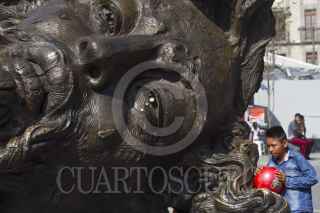 MÉXICO, D.F., 31DICIEMBRE2015.- Esculturas gigantes de Javier Marín pertenecientes a la exposición "Corpus" son aprovechadas por los paseantes del zócalo, en el último día del año. FOTO: MOISÉS PABLO /CUARTOSCURO.COM