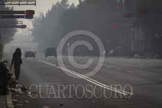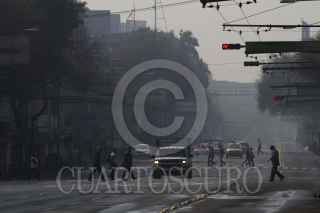 MÉXICO, D.F., 01ENERO2016.- Con una intensa neblina combinada con el humo por la quema de cuetes la ciudad amaneció en su primer día del año con un color grisaseo, los capitalinos poco a poco comenzaron sus actividades con el desvelo a cuesta tras la fiesta. FOTO: MOISÉS PABLO /CUARTOSCURO.COM