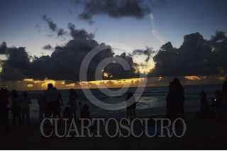 CANCÚN, QUINTANA ROO, 01ENERO2016.- Cientos de cancunenses y turistas se dieron cita en playa delfines para observar los primeros rayos del sol de este 2016. Quintana Roo fue el primer estado en recibir el año nuevo. FOTO: ELIZABETH RUIZ /CUARTOSCURO.COM
